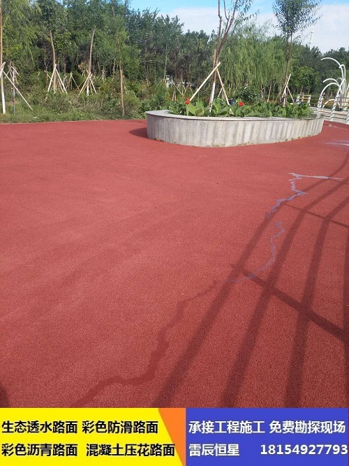 冷涂型彩色防滑路面材料的類型有丙烯酸型、環(huán)氧型,聚氨酯型等,其為液態(tài)。施工時,無需大型設(shè)備,只需將基料與固化劑按比例混合后,用滾涂的方式涂鋪于路面,并添加防滑沙層,經(jīng)過化學交聯(lián)反應(yīng),快速固化成堅韌的漆膜,形成彩色防滑路面。 施工簡單,快速簡便,目前已經(jīng)成為市場主要的選擇對象。其中聚氨酯型由于其綜合性能更有優(yōu)勢,所以在國內(nèi)目前的市場占有率*高。